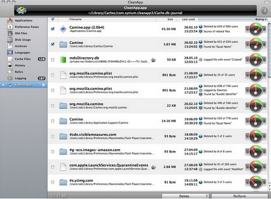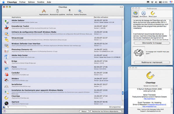 CleanApp的用户界面简单易用,它会列出所有在硬盘中的应用程序,只要将不再需要的程序拖放到视窗或 Dashboard中的CleanApp widget便可。同时,可将应用程序、系统外挂程序、widgets、插件程序等相关文件建立成压缩的存档。
